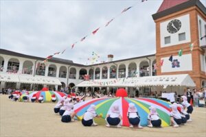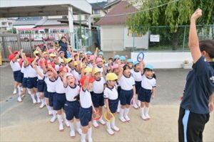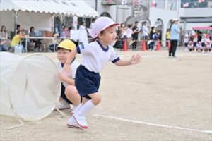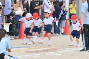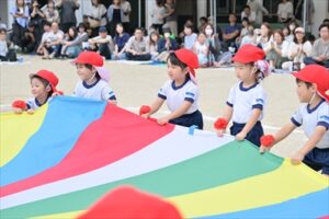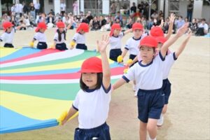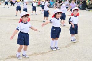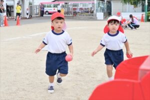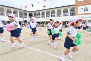 例年2学期が始まってから少しずつ練習を…と思っていますが、今年も9月に入ってからも残暑が厳しく、10月に入ってやっと動きやすい気候となり、暑さ対策をしながら練習することができ、当日を迎えることができました👍日に日に上達していく姿や子どもたちが真剣に取り組む姿は、とても格好よく、頼もしかったです。各学年の練習には、園長先生、教務主任、事務主任、バス運転手が総出で競技のお手伝いに参戦し、幼稚園全体で気持ちを盛り上げていきました。