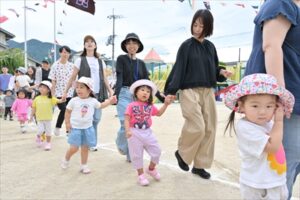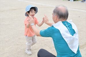 今年度は保護者競技も復活!!卒園児も急遽出場OKとなり、運動会を盛り上げてくれました。保護者の方の白熱した戦いに、子どもたちも大きな声で応援していました。