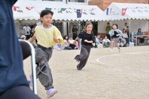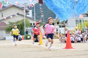先生やお友達と一緒になって取り組み、園内いっぱいの声援と拍手を受けて、子どもたちは最後まで一生懸命とってもよくがんばりました💪いつもと違う環境に、緊張した様子のお友達もいましたが、お遊戯や個人走、ダンスにリレー…各学年とても盛り上がりました♪