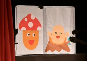 毎月みんなが楽しみにしている先生からのプレゼント(出し物)、大型しかけ絵本「どんぐりくんの帽子どこかな?」を見ました。どんぐりくんが帽子を探す様子を子どもたちは、「ちゃんと見つかるかな?」と心配そうに見守り、最後に帽子が見つかった時には、子ども同士で「よかったなぁ。」と言葉を交わし顔を見合わせてる様子が見られました。それぞれがお話の世界を楽しむことができました。